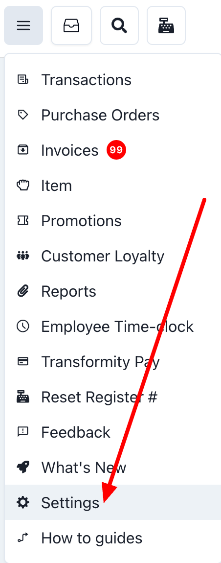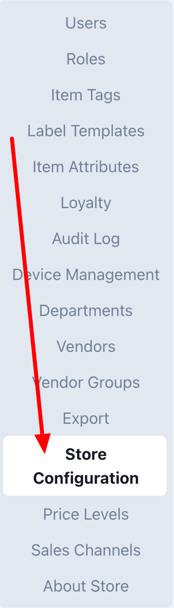 - Once in Settings, you will see a static menu. Select "Store Configuration"
