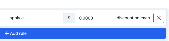 - Fixed: It will reduce a fixed dollar amount off each item (like $2 off each bourbon when buying 4!)